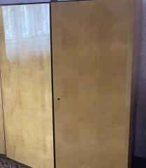 Rozpílili sme ju napoly a poličky vyrobili z dverí a zvyšných kusov nábytku podobnej edície. Na hnedú knižnicu sme použili viacero vrstiev hnedého vosku dark wax, ktoré sme nechali zaschnúť, aby sa vytvorila kresba (pôvodná skriňa bola totiž vysokého lesku) a na červenú knižnicu sme použili farbu Emperors silk s priesvitným voskom na menej namáhané časti a s matným lakom na police. Na hnedé časti a zadnú stenu (vyrobenú zo starých drevených podlahových dosiek takisto zdedených po babke) sme použili hnedý vosk.