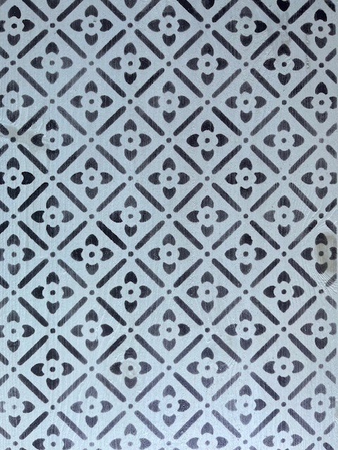 Kúpila som drevené boxy na uskladnenie potravín a zdalo sa mi, že keď ich len prelakujem, bude to trochu nudné. V tom čase som objavila farby Annie Sloan, takže voľba bola jasná. Rozhodla som sa pre jednu vrstvu kriedovej farby Duck Egg Blue, aby presvitala kresba na dreve a na to som použila šalblónu v odtieni Graphite. Celé som to na záver prelakovala.