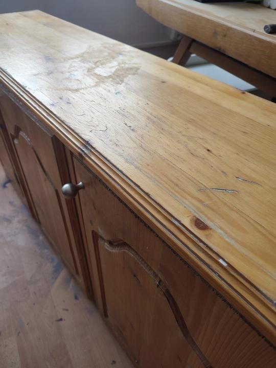 Náš komentár: Super, že ste dokázali zachrániť komodu aj keď bola viac menej v dezolátnom stave. Je skutočne krásna. Pri renovácii Lucia použila viacero pokročilých techník dekoratívneho maľovania. Všimnite si tiež stenu v pozadí, ku komode sa krásne hodí. Ďakujeme.