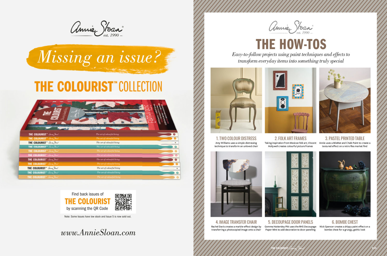 Colourist je unikátny "kniho-časopis" (vyzerá ako časopis, ale je hrubší skoro ako kniha:)) ktorý vydáva Annie Sloan, aby sa s vami podelila o svoje nápady a inšpirácie. Môžete rozšíriť svoju zbierku, pretože vychádza iba raz za pol roka. 132 strán plných starostlivo vybraného obsahu.