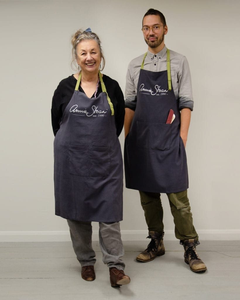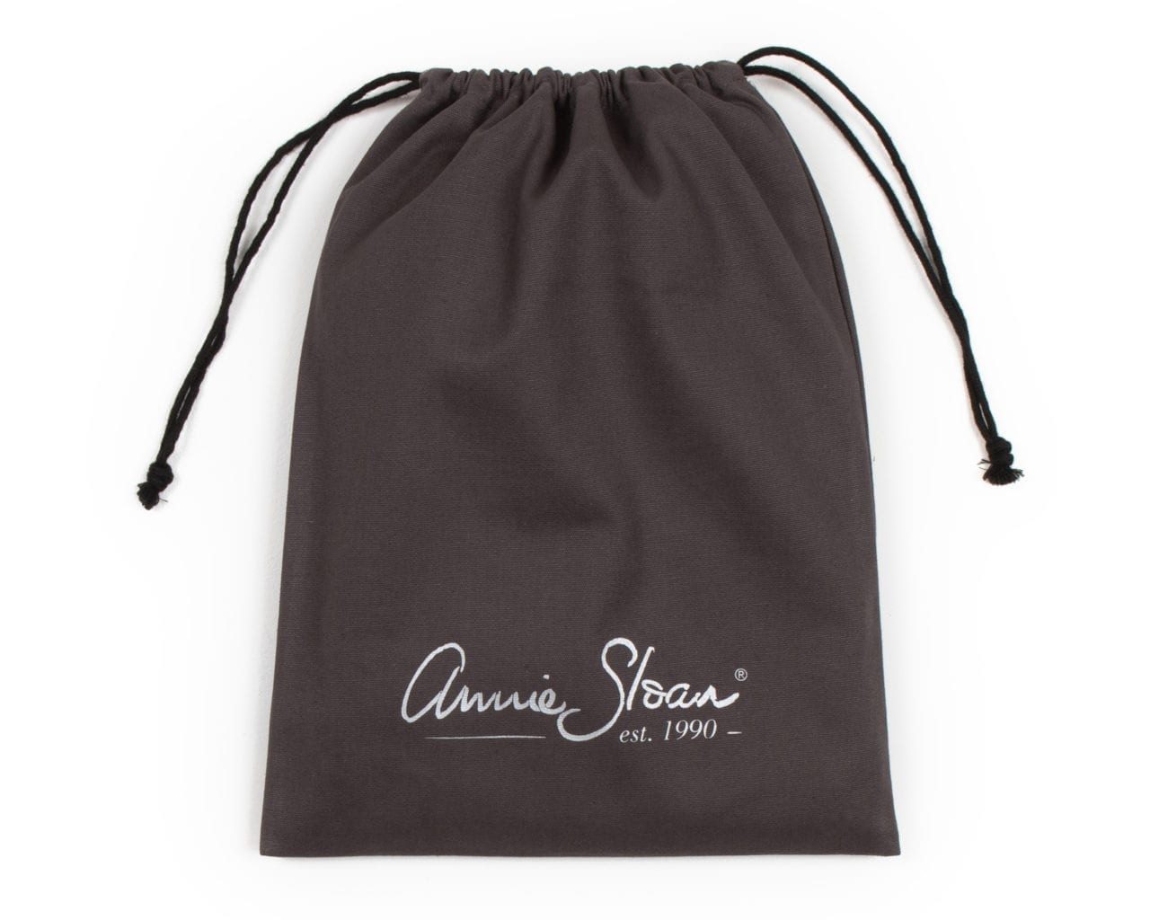 Na zástere je podpis Annie Sloan v striebornom odtieni, z ktorého každý hneď pochopí, aké farby používate. Zástera je zbalená v praktickom vrecúšku so šnúrkami.