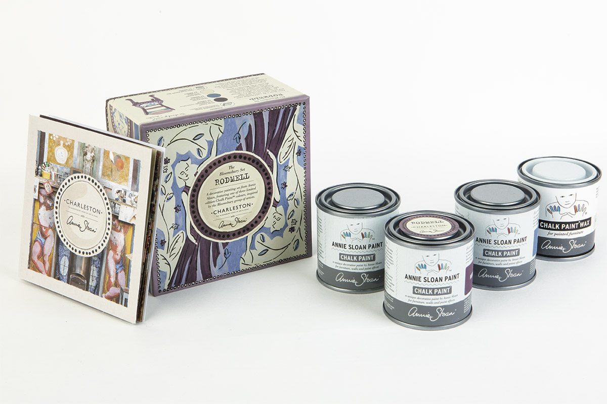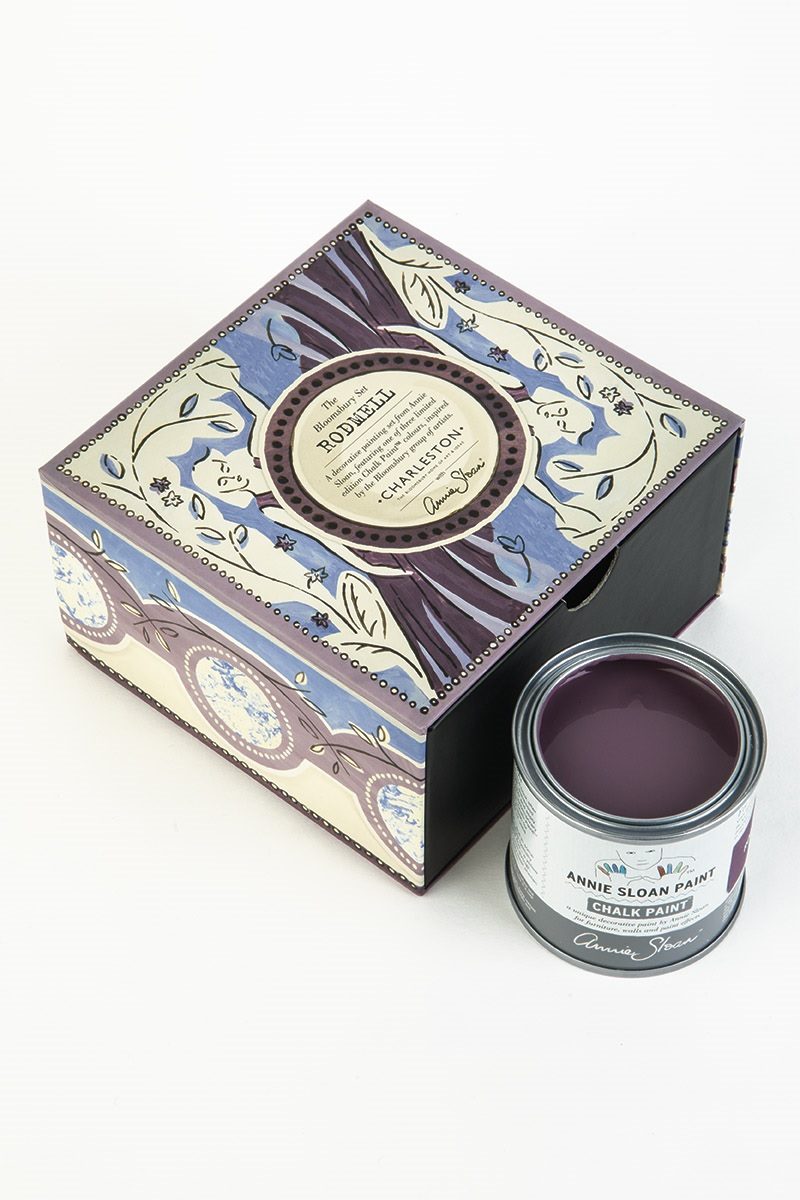 Sada obsahuje jeden nový odtieň - Rodmell (tmavšia hlboká fialová), k nej doplnené dve komplementárne farby - Greek Blue a Original , priesvitný vosk Annie Sloan Clear Wax a praktický krásne spracovaný ilustrovaný návod plný inšpirácií. To všetko je zabalené v štýlovej krabičke. Obsah sady bohate postačuje na namaľovanie menšieho kusu nábytku ako je stolička alebo príručný stolík.